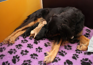 7 puppies (4+3) 1 blond male,1 blond female, 3 black and tan